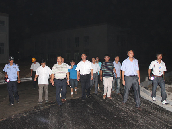 牛书记实地察看了行政楼、主教楼门前广场、环校沥青道路、学生宿舍、学生食堂建设情况,并听取了孙元武总经理关于8月25号交工的情况汇报及倒计时每日工作按排。
