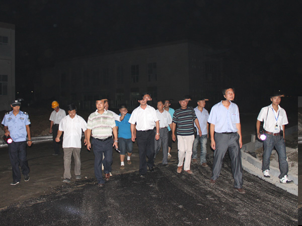8月17日晚上8点30分,市委常委、市纪委书记牛向阳等领导在孙元武总经理的陪同下,深入城南中学新校区工地现场,陪工人们一起加班,亲切慰问工友们。