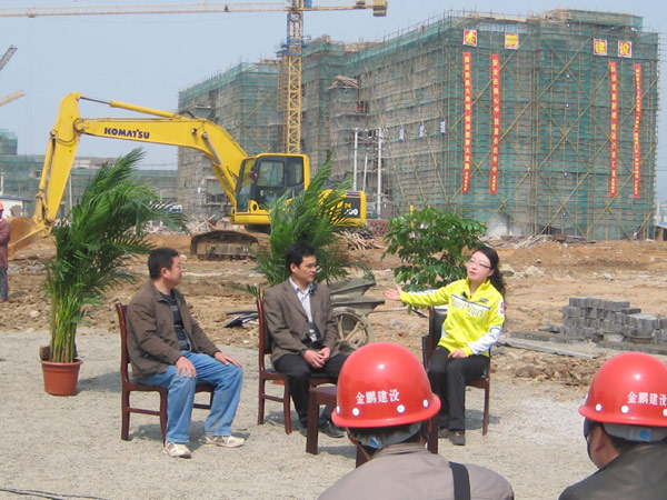 甲方代表、教育系统臧光主任对金鹏建设集团的工程质量表示肯定的同时,也对他们的辛勤的付出表示感谢;集团副总经理孙元祥代表集团公司祝愿全市建设者们“五一”劳动节快乐;滁州电视台台长董业龙也亲临现场,对节目录制予以亲切关怀。