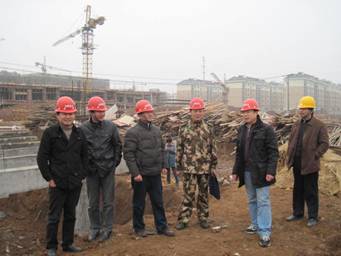 业主代表顾玉彪(右三)、诚信总监朱永祥(右四)等验收卫生楼基础