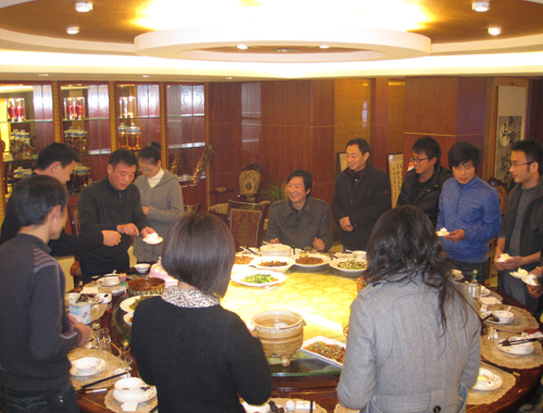 在饭桌上孙总总是带着一种关怀的口吻了解我们在工地上面的事情,让我们很是感动,为整个生日晚宴添了几份融融暖意。孙总说:“你们还年轻,要用发展的眼光去看待问题,明天的成功是靠今天殷勤的汗水换来的。”这句话虽然很朴实,却暗含了深刻哲理,让我们良久品味。
