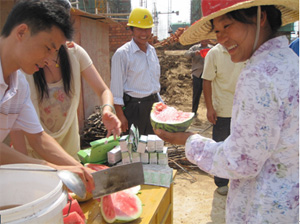 自六月下旬以来,我市迎来了入夏的首轮高温天气。由于建筑行业的特殊性,现阶段“防暑降温”工作成为公司领导关注的头等大事。孙元武总经理要求财务部门安排专项资金投入到“防暑降温”工作中去,确保“防暑降温”所需的一切开支及时到位。想一线员工之所需,供一线员工之所缺,公司人事部门和办公室多次走进工地,实地了解员工的需求,想尽一切办法,与我们奋战在酷暑一线的兄弟姐妹们共度高温天气。