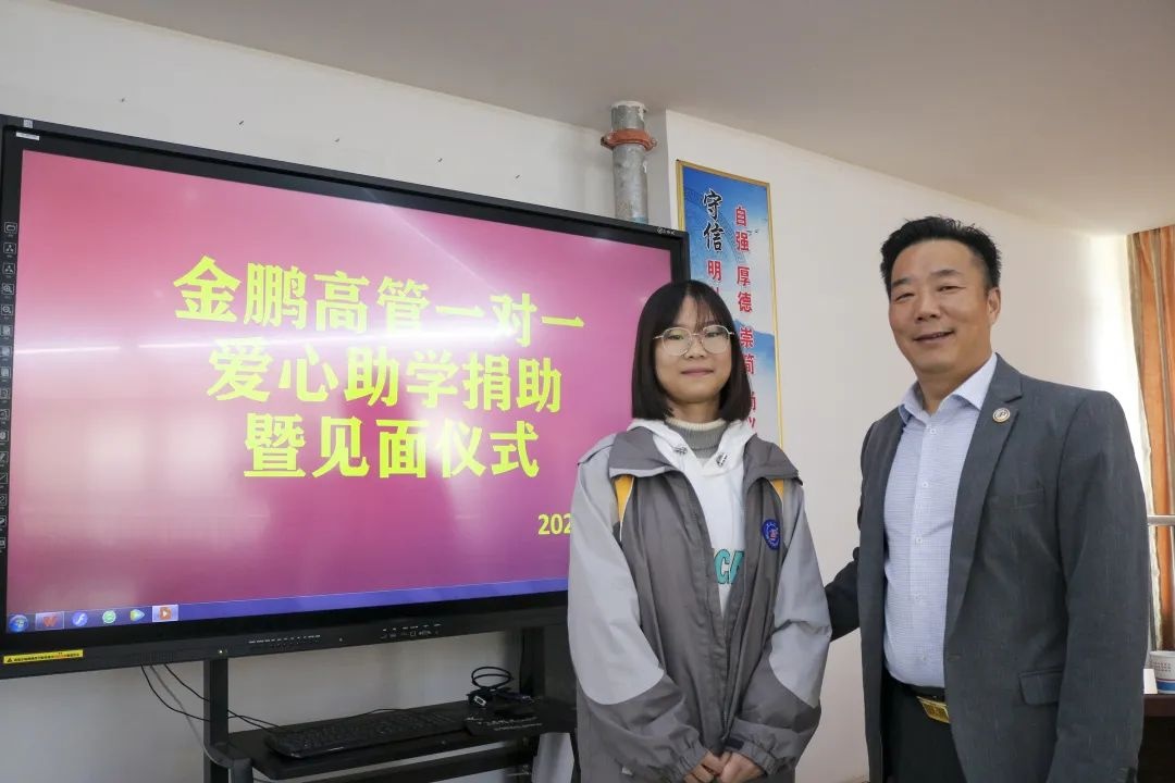 高管1+1助学是金鹏公益助学的成功实践,在学校和学生群体、政府、主流媒体、爱心企业及人士等社会各界逐渐扩大影响,形成强大的正能量。接下来,金鹏高管1+1助学项目还将继续,项目发起人以及越来越多的金鹏高管参与其中,金鹏以“百年金鹏、幸福金鹏”为愿景,践行公益,尽己所能创造美好,以初心与爱心不断书写更精彩的圆梦华章!