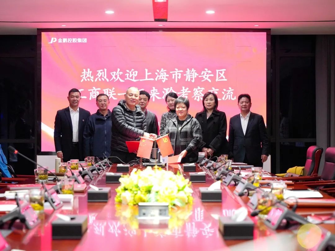 11月12日,上海市静安区工商联(总商会)副主席(副会长)史海云、张轶萌率上海企业家代表团一行30余人莅临金鹏考察交流。滁州市政协副主席、市工商联(市总商会)主席(会长)王晓平,滁州市工商联副主席王雪松,滁州市工商联秘书长崔平原等陪同考察。金鹏控股集团党委书记、董事长孙元武,工会主席、副总裁陈礼兵热情接待。