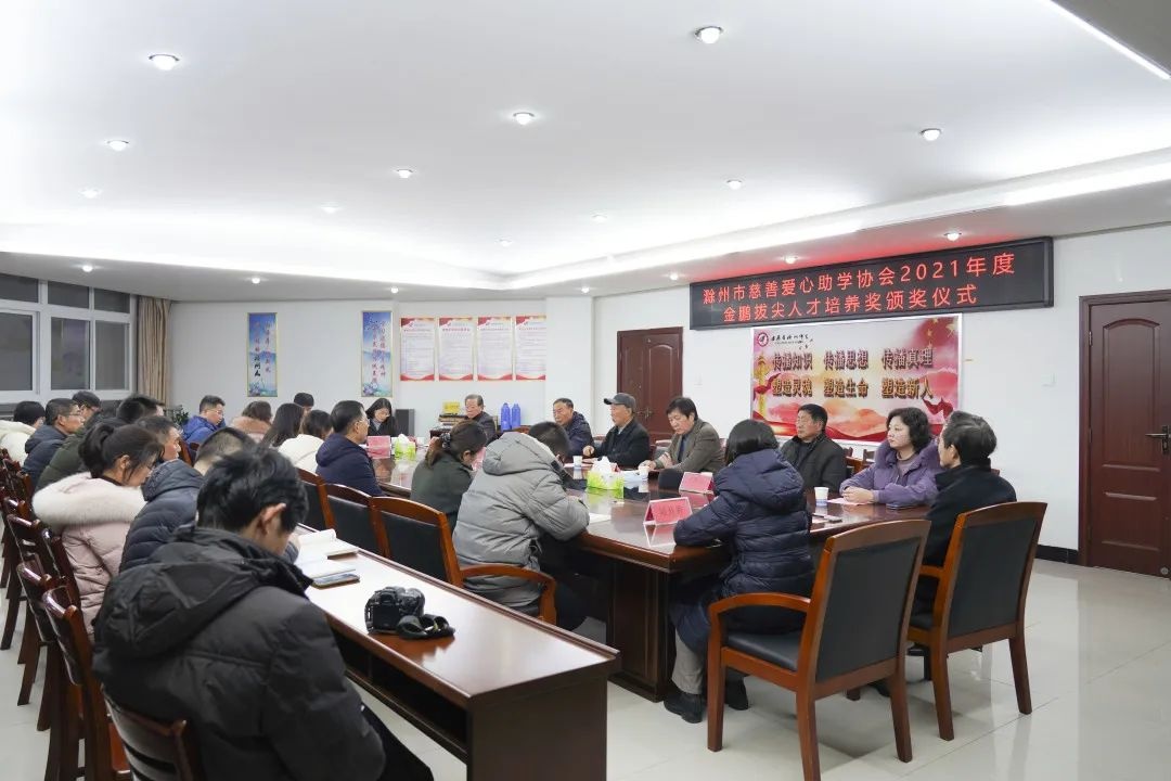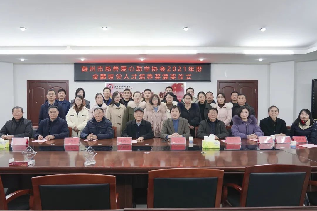1月10日,2021年度金鹏拔尖人才培养奖颁奖仪式在滁州中学举行。滁州市关工委常务副主任、市慈善爱心助学协会领导组组长李晓秋等协会领导,滁州中学党委书记、校长刘志刚等校方领导,金鹏控股集团总裁孙元祥等领导及滁州中学受嘉奖教师参加颁奖仪式。
