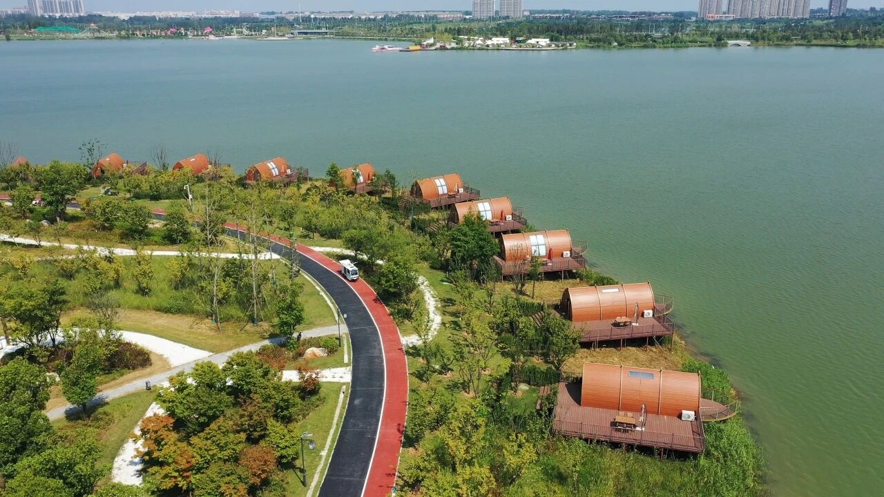 作为中国农民歌会举办地,十八年来,滁州经济总量攀升至全省第三,成为全国增速最快的城市之一。文旅消费也成为拉动滁城经济增长的重要引擎。作为本土企业,金鹏进一步夯实自身产业链,发展文旅产业,塑造文旅品牌。金鹏皇庆湖公园,前期是由滁州市南谯区政府投资建设的集生态保育、游憩与公共休闲等功能于一体的大型湖泊型生态公园。金鹏响应市、区政府文旅政策号召,总投资2亿元,以文旅融合助力乡村振兴,对皇庆湖进行高阶文旅项目规划和开发。