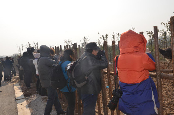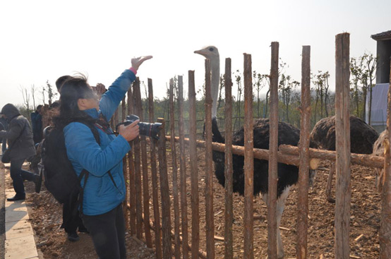 刚一下车,艺术家们就被农庄的风景所吸引住了。波光粼粼的湖面,大片的绿色蔬菜大棚、成群的野鸭、散养的黑猪、矫健的骏马、可爱的鸵鸟、传统的娱乐设施、古典的画舫、古朴的六角亭……面对金鹏生态农庄独具特色的农家美景,摄影艺术家们流连忘返,赞不绝口,全然不顾拍摄当天凛冽的寒风,纷纷抢占最佳位置,选择最佳角度抓拍镜头,定格住每一个赏心悦目的画面。在结束拍摄之时,艺术家们为金鹏生态农庄颁发了“滁州市摄影艺术家学会创作基地”与“滁州市新闻摄影学会创作基地”牌匾,这也意味着金鹏生态农庄即将成为滁州市摄影艺术爱好者们喜爱的创作采风景点。