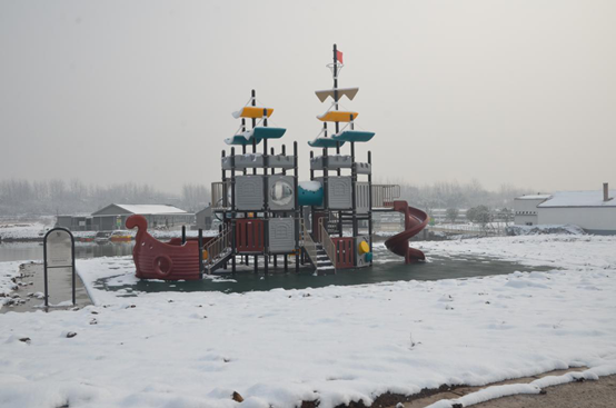 虽然金鹏生态农庄还未正式对外开放,但目前已经初具规模,酒店、游乐设施、花样景点、动物、植物与各类大棚蔬菜完美的将城市和乡村结合一起,让我们看到了几个月后即将开园的盛况。漫天的飞雪让这一片小小天地改变了以往的容颜,眼前的一切全成了银白色的,地上、房上、树上、山上,无处不有雪的踪影。在这样的洁白空间里,会让您产生种种遐想,好像这雪是带着某种使命,突然来到农庄,为农庄增色出彩。踏着软绵绵的雪,发出咯吱咯吱的声响,你会发现你面前温柔的湖水伴随着大雪覆盖的一览无际的树林。