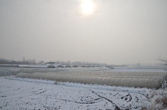 屹立在大雪中的农庄大棚