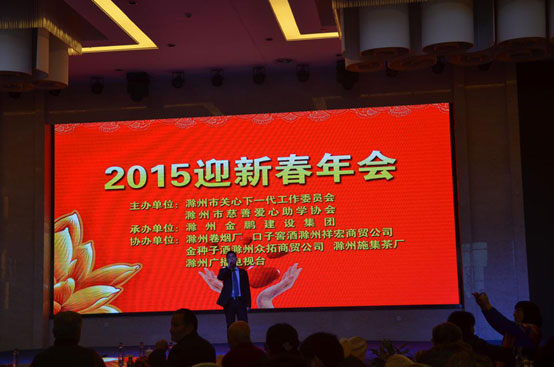 1月24日下午,由滁州市关心下一代工作委员会与滁州市慈善爱心助学协会主办、金鹏建设集团承办的滁州市爱心慈善助学协会2015迎新春年会在金鹏广场酒店一号厅隆重召开。滁州市委、市政府,慈善爱心助学协会的各位领导,协会各会员单位及滁州市部分爱心人士参加了本次会议。金鹏地产副总经理周蓓、金鹏99城市广场总经理朱峰等代表金鹏建设集团参加了本次年会。