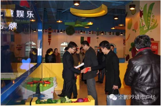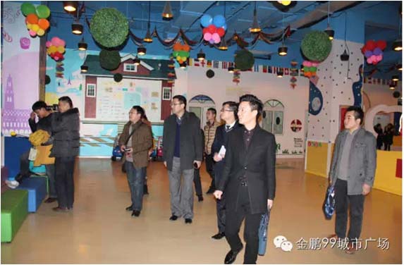 随后,儿童事业部经理林强带领各位领导参观了金鹏99城市广场儿童业态。