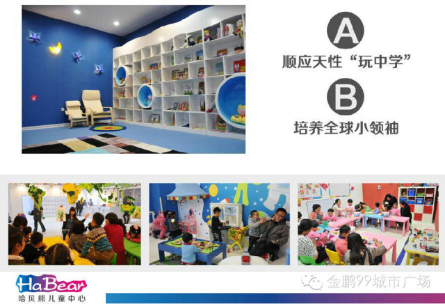 【哈贝熊儿童中心】作为儿童创造力开发的领军品牌,首次入驻滁州金鹏99城市广场,正是看中了金鹏99城市广场4+2+1的这种营销理念。也为滁州的家长们带来了一种全新的教育模式,让小朋友们在玩乐中学习,快乐中成长。