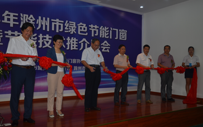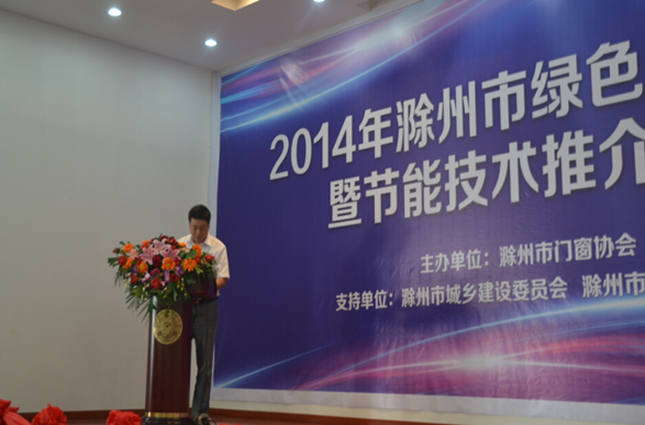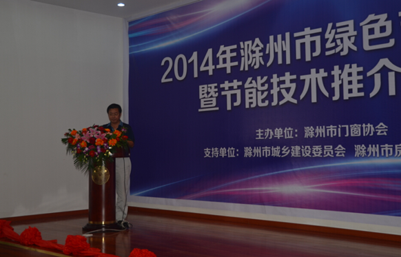 2014年9月3日上午,由滁州市门窗协会主办,滁州市城乡建设委员会、滁州市房地产管理局协办的“2014年滁州市绿色节能门窗及节能技术推介展会”在金鹏新型建材三楼展厅拉开帷幕。市政协副主席、市建委主任苏虹,市政协副主席、市工商联主席查镜波,市政协副主席高迁,市建委书记杨光远,市建委总工程师戴弋,市房产局副局长王家武,市招标局副局长韩昭祥,合肥金属门窗幕墙协会乔东应会长,市建筑业协会黄会长等领导应邀出席本次活动。会议由滁州市门窗协会常务副会长陈翔主持。