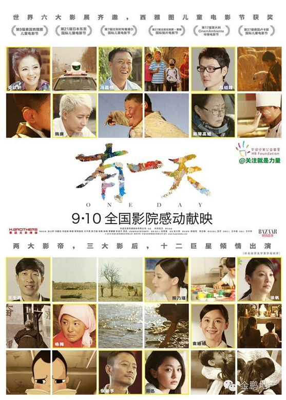 由周迅、韩庚、冯绍峰、袁姗姗、张涵予、安以轩、徐帆、斯琴高娃、王千源、熊乃瑾、咏梅、冯嘉怡等12位明星零片酬出演的公益电影《有一天》,于9月10日温情公映。