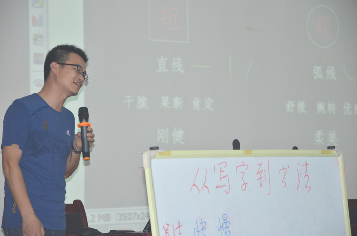 黄文泉老师从书法技法中的笔法快、慢节奏的不同;字法收、放的变化,以及章法排列的变、贯布局 ,深入简出、风趣幽默的阐述了从写字到书法的转变过程。告诉书法爱好者要“敬畏传统经典、完善自我风格”