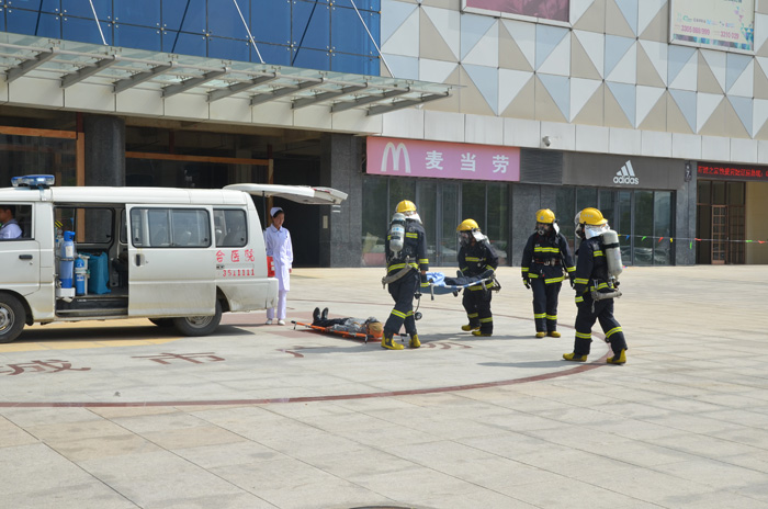 上午9时许,十余辆消防车准时到达预定集合地点。总指挥官一声令下,消防官兵同时奔向各自岗位,救火车喷淋装置打开,消防官兵同时从安全通道和消防云梯解救出多名被困人员,前及时送上早已等待多时的救护车。整个演习历时四十分钟,达到了预期效果。消防支队政委张彤、金鹏建设集团董事长孙元武等领导观摩了此次演习,并给出了很高的评价。孙元武董事长表示:此次演习规模空前,消防官兵的配合默契,表现突出,良好的职业素养是金鹏学习的保障。最后要求金鹏相关人员,2014年年底,99广场的百货公司、影院、超市等都陆续投入使用,业主也大批入住,随着客流量的加大,金鹏更要加强消防意识,不断通过学习、演练等,真正做到无火灾隐患,出现问题,及时解决,保护好人民群众的生命财产安全。