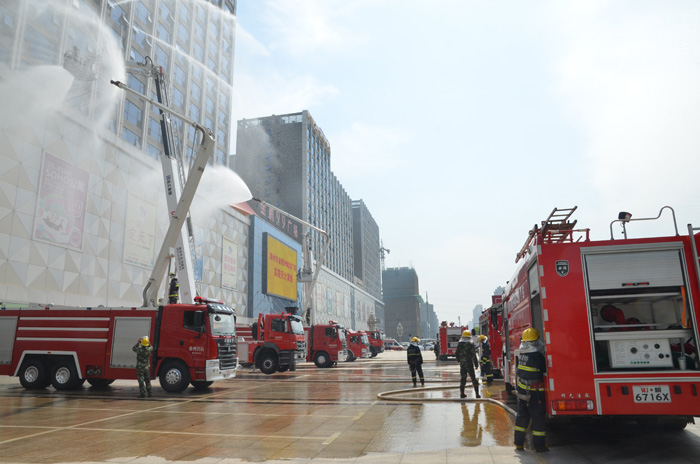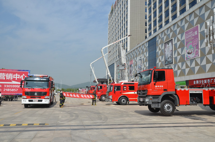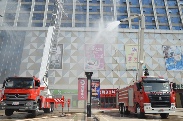 金鹏99城市广场与市武警消防支队举行大规模消防演习