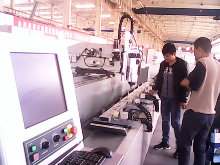 2014年5月9日,新型建材公司组织考察组赴济南天辰门窗设备公司考察我公司3月份申购的数控铣床加工中心,考察组人员包括生产部主任孙元兵、质检工艺员孙从龙、生产部机修工陈东洋、铝合金2车间班组长刘牛、铝合金一车间班组长白秀军、孙景勇。考察组到达现场后进行型材徽铝门扇料铣孔调试,现场安装门锁,铣滑衬安装槽,平开窗水槽,此数控铣床加工中心钻铣效率高且技术精准,将适用于大批量生产,并同时参观了平开窗四角组角机、五金件组装台等先进设备。