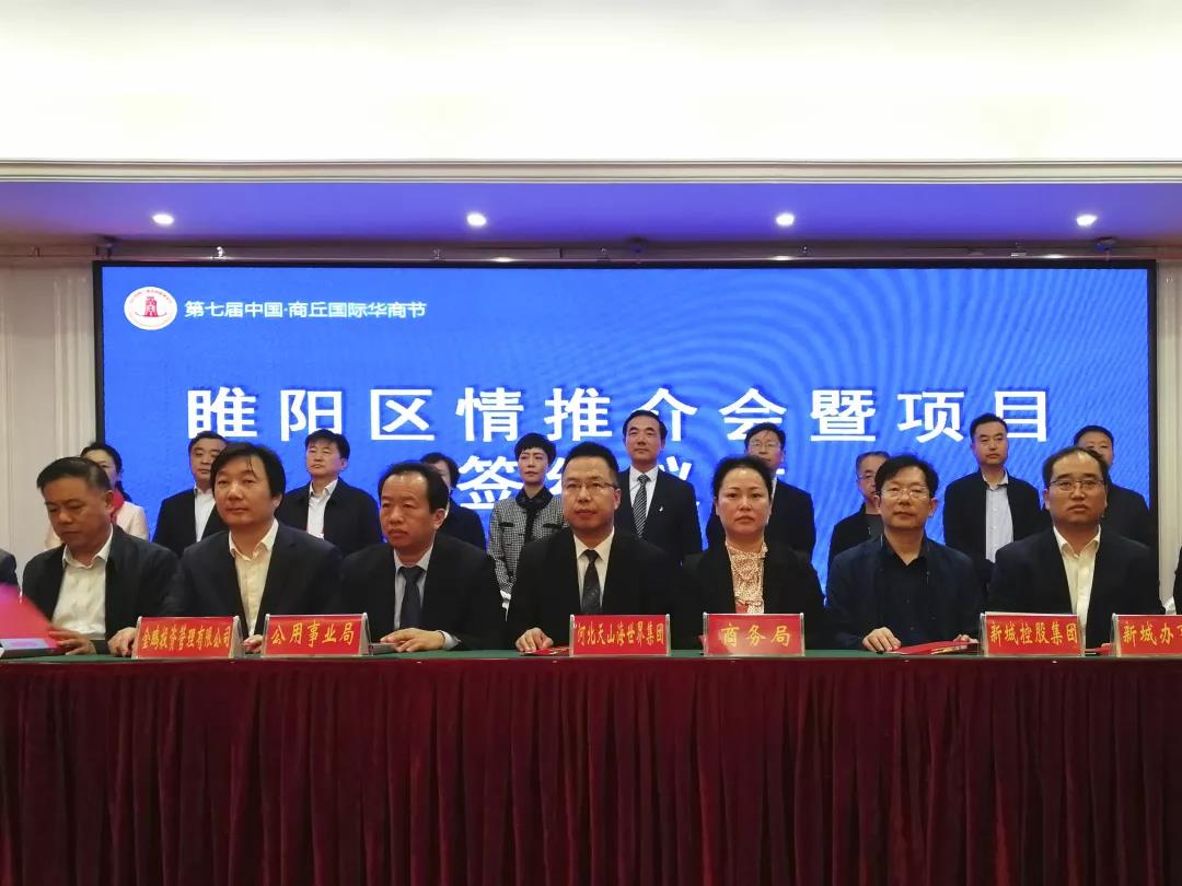 商丘国际华商节具有浓厚的商丘地方文化特色,开展了特色产业展、美食文化节、旅游风情展、非物质文化遗产展示展演等各类活动,华商节活动多样,内容精彩,吸引了包括金鹏在内众多参会客商。董事长一行参加华商节拜谒活动之后,出席了商丘市情推介暨项目签约仪式,金鹏与商丘市睢阳区政府签订了三商湿地公园及周边区域综合改造开发项目框架合作协议。