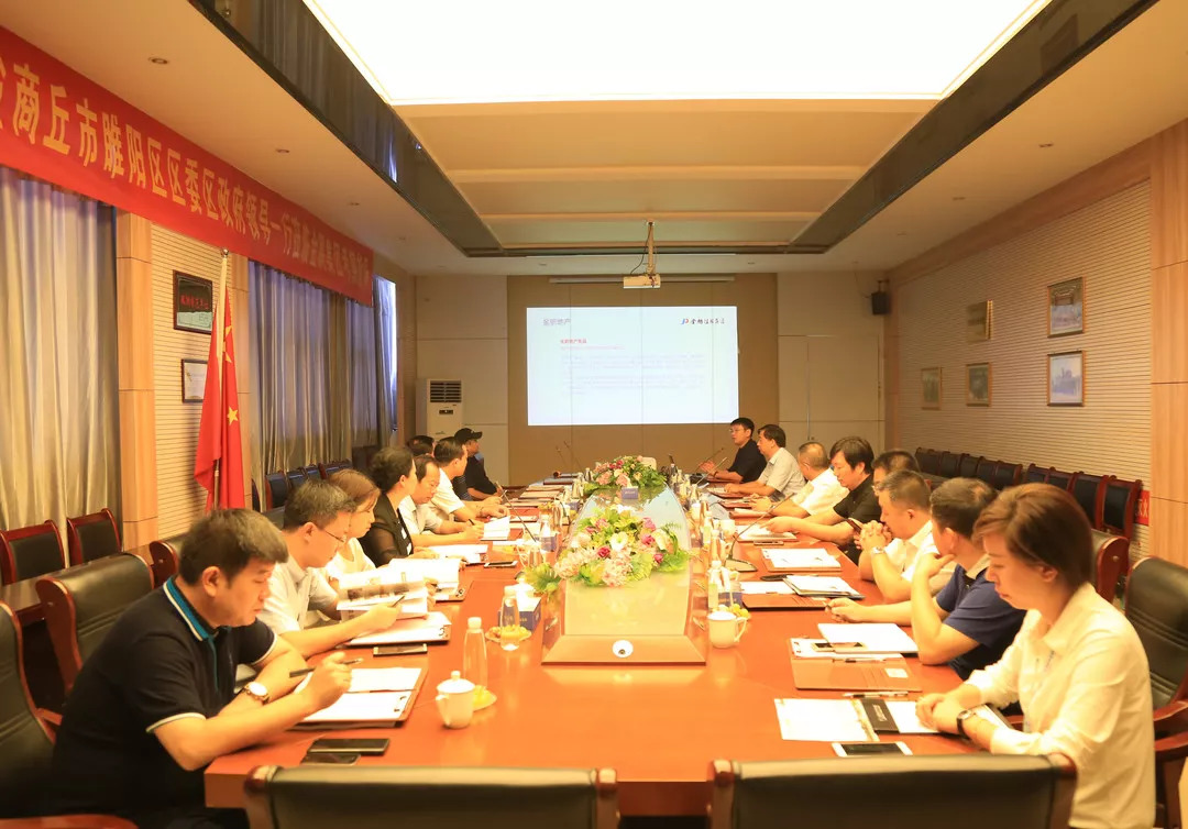 金鹏控股集团董事长孙元武对商丘睢阳区委区政府领导一行的到来表示热烈欢迎,会上,董事长表示,曹书记的话更增加了金鹏投资商丘的信心,为顺应政府诉求、提升区域价值,金鹏愿与睢阳区委区政府携起手来,为城市建设注入新动能,共同打造广阔发展前景。