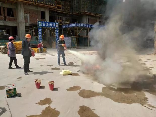 金鹏建设集团始终坚持“安全为主,预防第一”的生产理念,随着气温的回升,天气干燥,集团各项目部陆续开展消防应急演练,并由安全主管对全体项目成员进行消防知识宣贯,指出施工作业中易发生火灾的消防隐患,要求项目部尤其针对生活区消防注意事项务必严格把关,同时对于灭火器的种类、使用方法给予介绍。