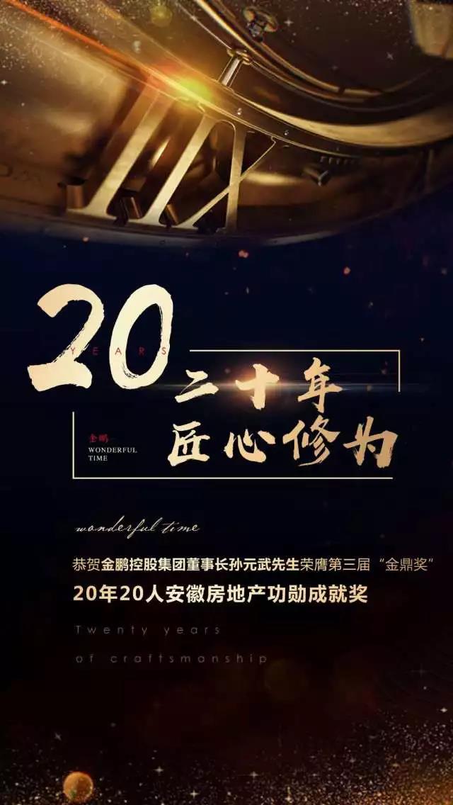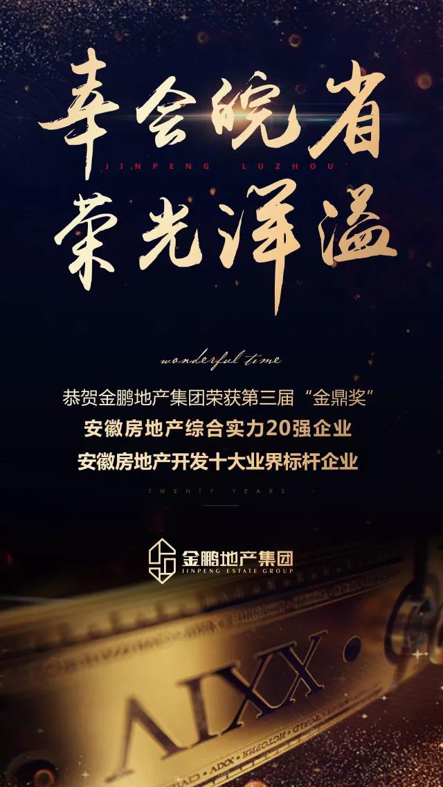 金鹏地产集团荣获2017年安徽房地产综合实力20强、安徽房地产开发十大业界标杆企业,金鹏·珑玺台项目荣获2017年安徽房地产品质提升典范楼盘。同时,孙元武董事长荣膺20年20人安徽房地产功勋成就人物。