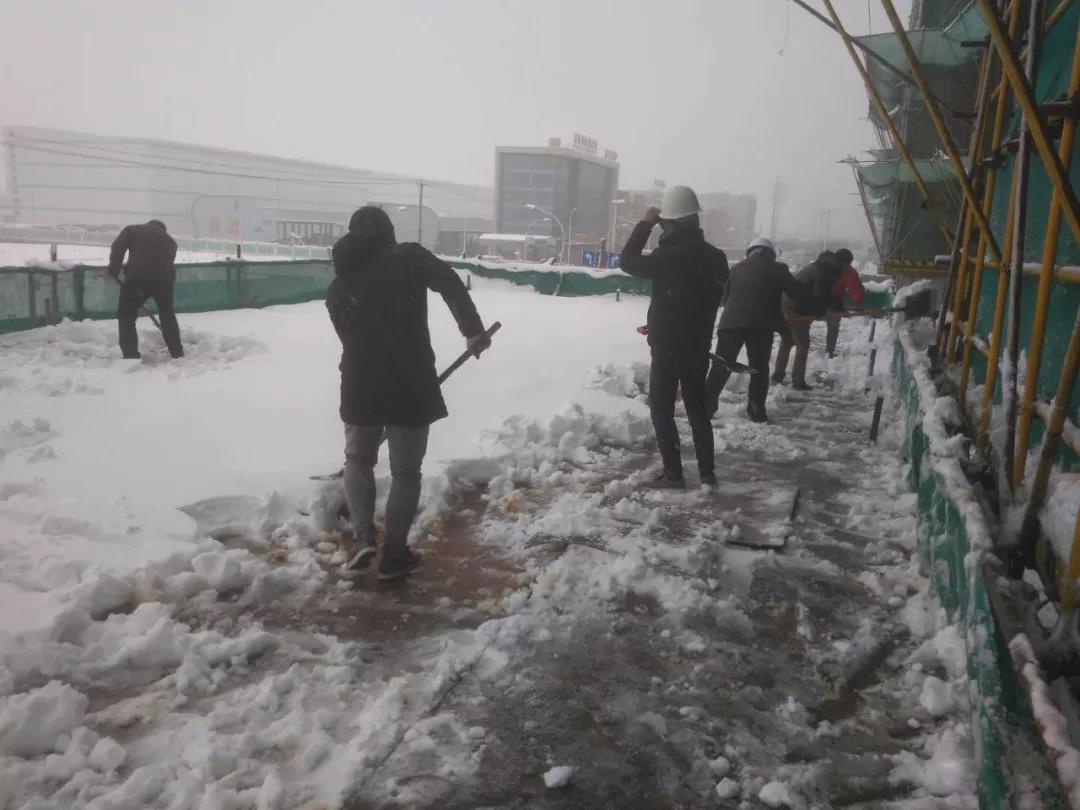一场突如其来的大雪让金鹏建设集团变成了银装素裹的世界,雪景虽美,却也给建设集团园区和施工现场带来了很大的积雪压力。1月4日一大早集团领导就组织总部员工清扫积雪,消除安全隐患;各项目上也迅速开展清扫积雪的工作。