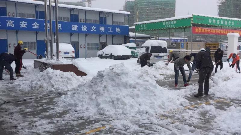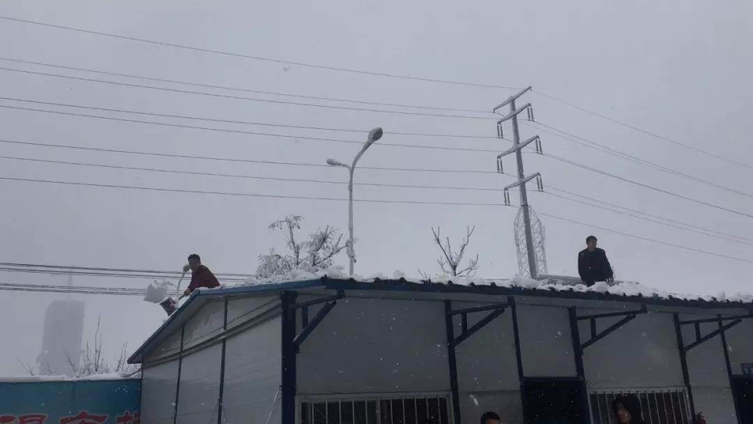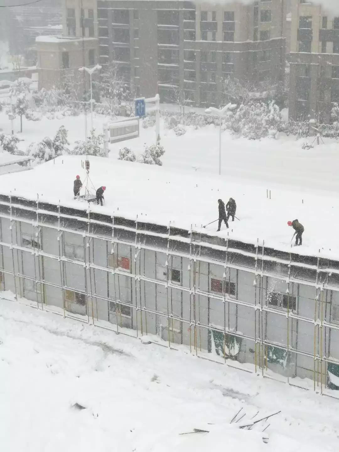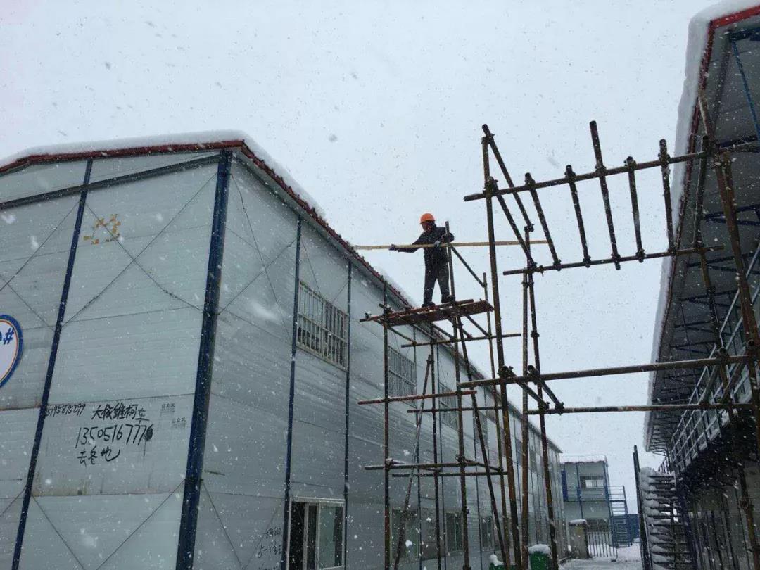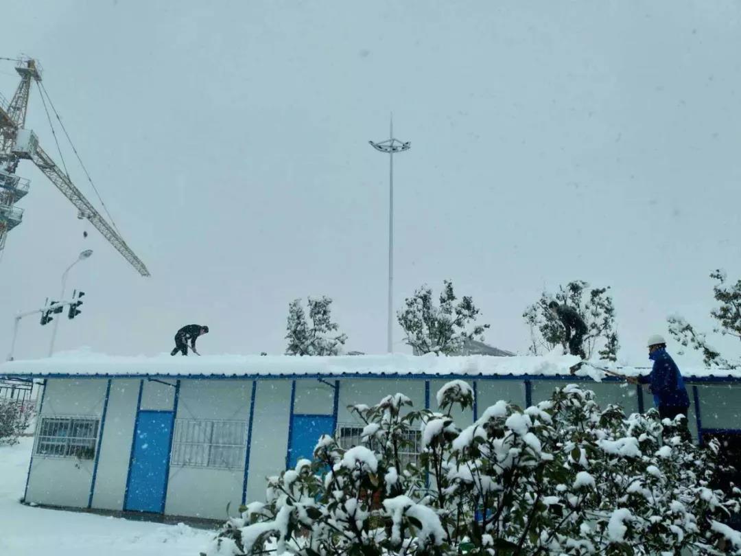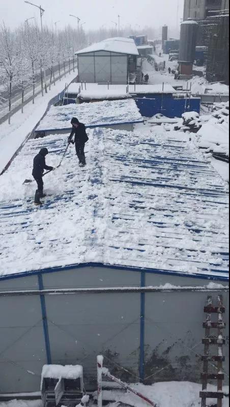 金科瑶海项目部清除活动板房上的积雪