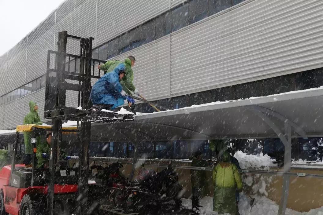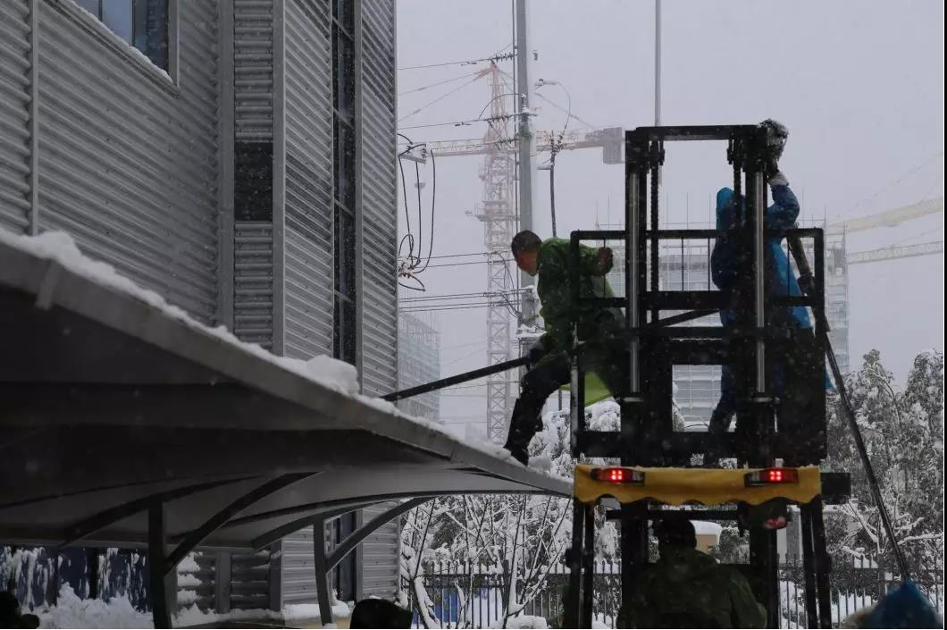 面对这突然而至的大雪,金鹏节能科技迅速反应,吴心勇总立即做出全面指示,陆素琴总组织人员铲雪,为员工出行开辟道路。