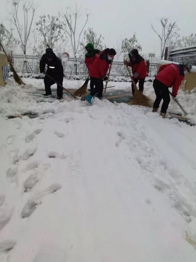 为了方便小区业主出行,未等雪停,大家就拿着扫帚、铲雪板、清雪车等工具战斗在风雪中。清雪中,有的手冻红了,有的衣服被雪打湿了,有的带病坚持清雪,无一人退缩,不敢停歇!经过大家齐心协力,快速的将小区的主干道、单元门前及车库门前清理干净。