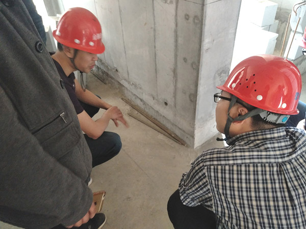 经过介绍后,大家感受到使用的“新模板工艺”,极大程度避免了传统木模混凝土浇筑成型质量难控制且观感差的质量通病;而且新技术的使用,也有效避免抹灰后有空鼓、开裂现象。大家纷纷拍照,并与金鹏建设技术负责人提问互动。