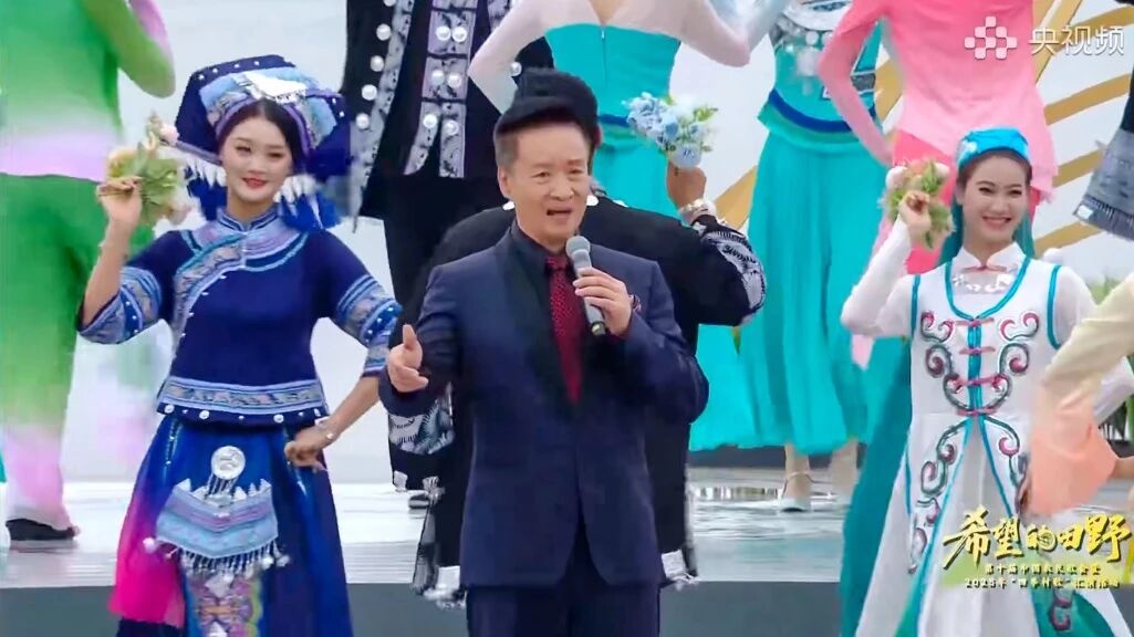 “在祖国辽阔的大地上,动人的歌声汇成海洋……”伴随着国家级艺术家阎维文高亢嘹亮的歌声,主题演出在开场歌曲《我们的祖国歌甜花香》中拉开帷幕。随后,“跨越·千里江山图”“聚力·东西南北中”“奋斗·敢为天下先”三大乐章主题表演依次呈现,来自全国的村歌代表、农民音乐人、国家级院团艺术家、明星嘉宾等齐聚一堂,用一首首动人的歌曲,共同唱响了乡村全面振兴的时代旋律,传递出新时代农民自信自强、建设美好家园的坚定决心。