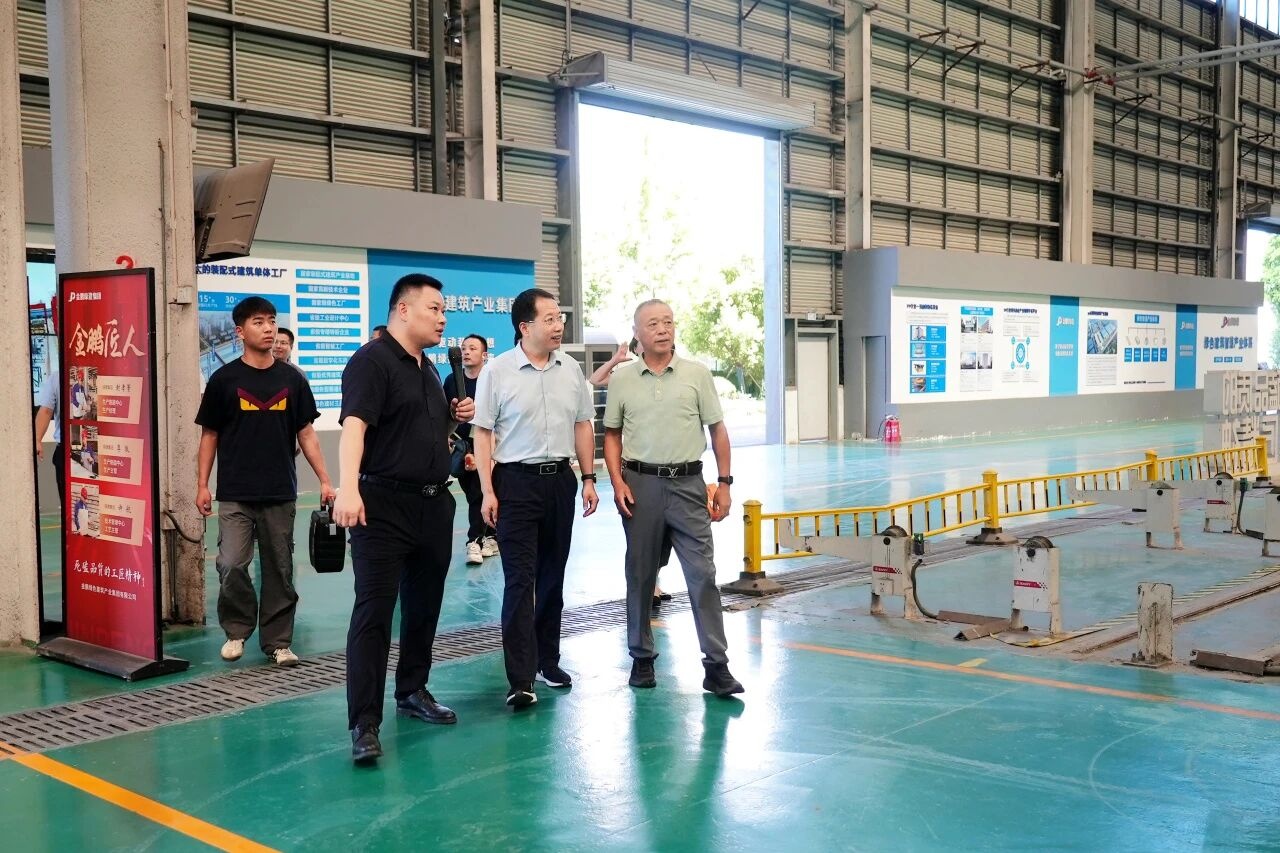 随后,驱车前往金鹏国家装配式建筑产业基地,孙元武董事长现场介绍了装配式产业的产线产能、创新成果、市场规模以及三期厂房对新型多层工业厂房建造体系的运用。