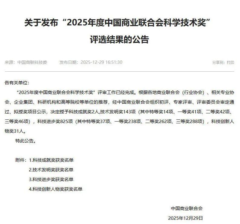 中国商业联合会科学技术奖是经国家科技部、国家科学技术奖励工作办公室批准设立的商业领域权威奖项,具备提名国家科学技术奖资格。该奖项旨在表彰在科学研究、技术创新、成果转化及产业化中做出突出贡献的单位与个人,推动商业行业高质量发展。