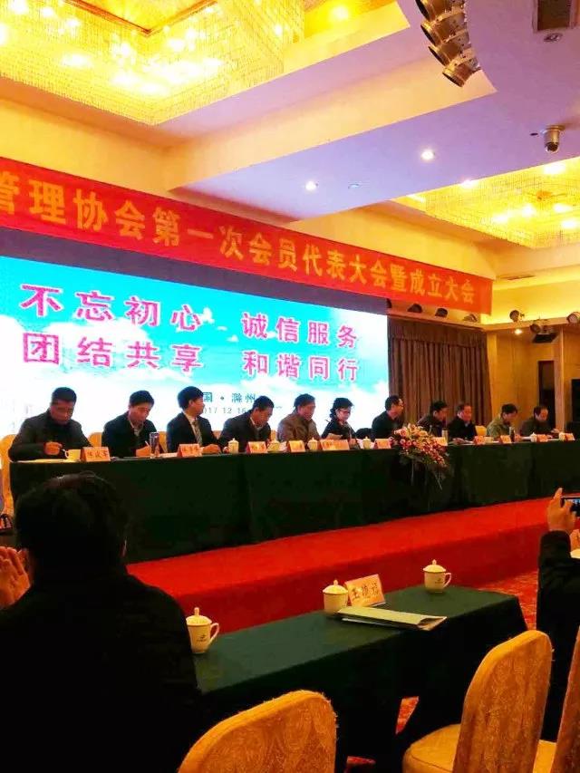 2017年12月16日上午8点,滁州物业服务管理协会成立(简称滁州物协),同时第一届一次会员代表大会暨成立大会召开,全市190家物业企业代表汇聚一堂。遵循民主公开原则,会议通过举手表决推选市物协第一届监事会主席,选举常务理事、秘书长、会长。无记名投票选举通过刘怀关担任第一届理事会会长,何正国、陈发元、梁华荣、刘坚、吕高云、霍守杭等为常务理事,胡年乡为秘书长。