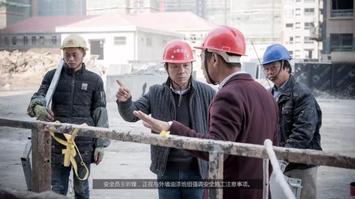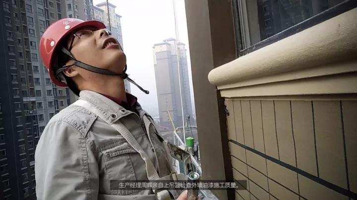 我们寻找生产经理周辉的时候,他正在20多层楼高的外墙吊篮上检查油漆施工质量,同事们评价他“周经理是一个做事十分严谨,对待质量死磕到底的人。”当问到他为什么要亲自上去检查时,他严肃回答“质量是建筑的生命,我负责生产管理就必须对质量负责任,所有工程细部节点我都会亲自到场检查验收,这是对我的工作负责、对项目负责、对公司负责。”