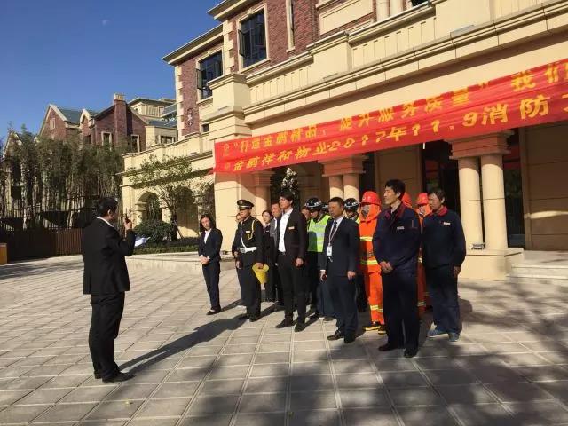 为创造良好的消防安全环境,提升员工消防安全意识和抗击突发事件的应变能力,贯彻落实公司“消除安全隐患,构建和谐社会”的消防方针,在各领导和部门的大力支持下,金鹏祥和物业公司于2017年11月9日举办大型消防演习,来自秩序维护员、客服管家、礼宾岗、设备维保工、保洁员等岗位人员近50人参加本次演习。