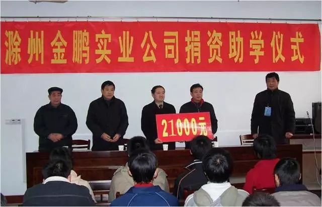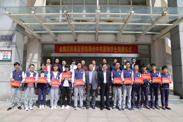 2017年5月,金鹏集团积极响应政府“精准扶贫”号召,组织集团高管一对一帮扶滁州中学、二中20名困难学生,从高一至大学毕业,每年5000元,共计十万元,以后每年将根据学生情况继续捐助。在捐款仪式上,孙元武董事长更是用自己求学道路上的困难经历,鼓励学生们树立坚定信心,把困难当作生活和精神的财富,契而不舍,奋发图强,学有所成后,报效家乡。孙元武要求各位高管资助不仅体现在物质上,更要在精神上给予鼓励,希望高管能够在闲暇之余,多关注资助孩子的生活状况,帮助困难学生重树信心。同时,孙元武董事长也正在谋划着扩大资助范围,让更多的贫困家庭不再为孩子的上学问题而发愁。