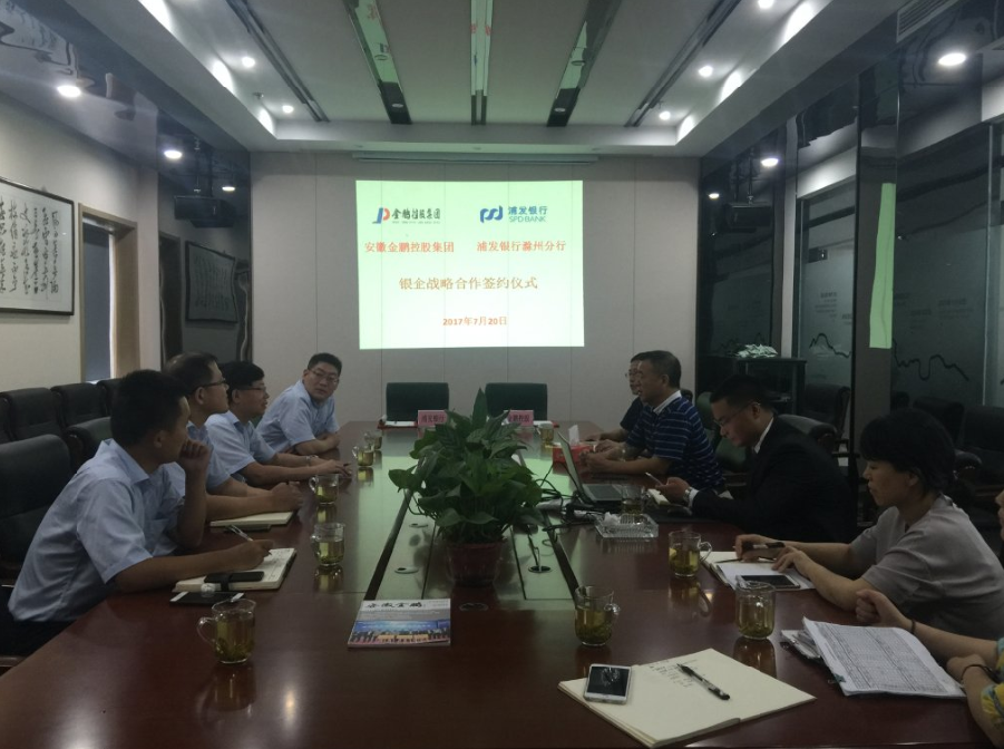 7月20日,金鹏控股集团与浦发银行滁州分行举行了《银企战略合作协议》签约仪式。就协议框架,双方全面拓宽合作领域,浦发银行将为金鹏提供50亿的融资额度,重点支持PPP项目,装配式建筑产业化等创新金融产品。