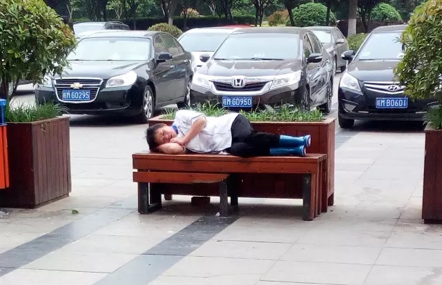 躺在广场椅上休息