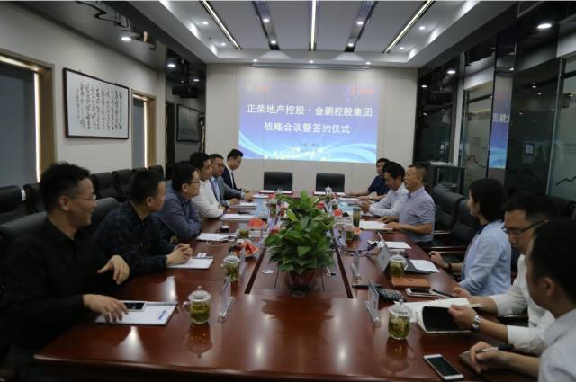 5月25日上午,金鹏控股集团与正荣地产控股股份有限公司签署战略合作框架协议。金鹏控股集团创始人、董事长孙元武,金鹏控股集团副总裁王恩陆,正荣集团副总裁肖春和,正荣集团南京公司常务副总经理季瑜君等领导出席签约仪式。