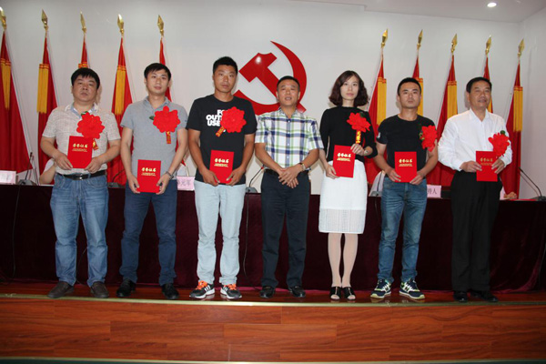 集团党委委员、副总经理、金鹏建筑装饰公司党支部书记孙元军同志宣读了集团党委《关于表彰先进党支部、优秀党务工作者和优秀共产党员的决定》。金鹏置业党支部为先进党支部;授予张启国、张芳同志优秀党务工作者,谢电举、陈玉传、李荣龙、龚传仁、李璐、周坤等同志“优秀共产党员”荣誉称号。