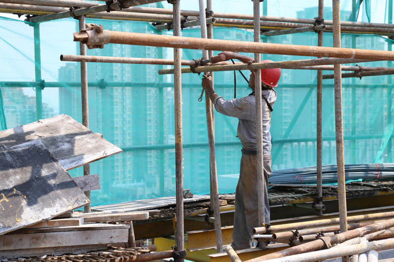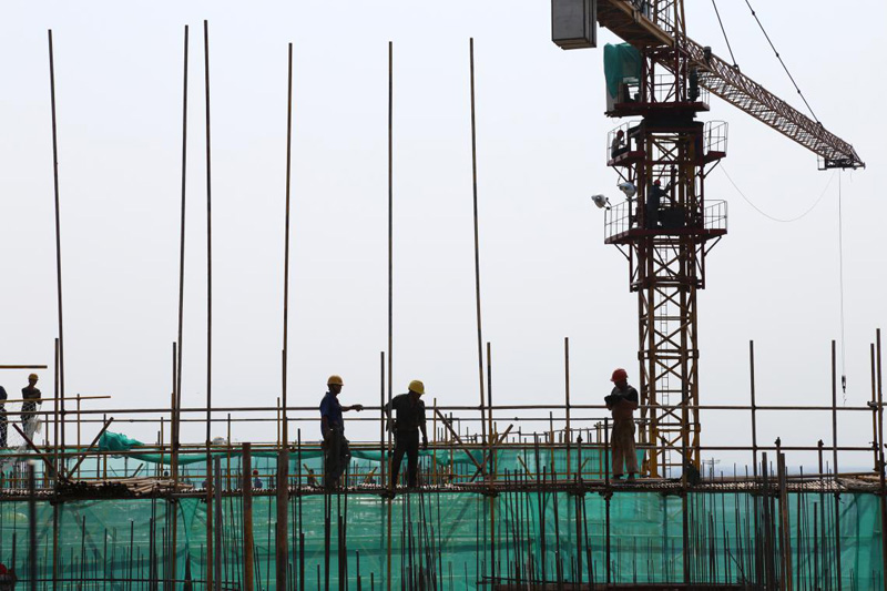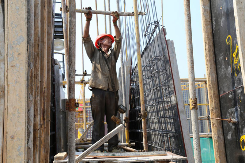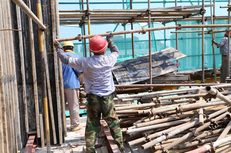 那些忙着铺设钢筋的,那些在烈日下烧电焊的、那些挑砖头扛水泥的,他们尽管热得汗流浃背,却还是穿着长衣长服,在如此高温下把身体包裹得严严实实,黝黑的皮肤是他们在汗水和烈日下熬出来的光辉印记。