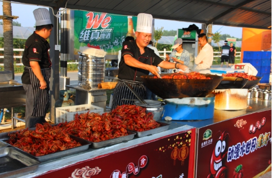正值炎炎夏日,金鹏生态园内数百亩亩花海迎风招展,花香扑鼻;画舫湖畔杨柳依依,碧水蓝天;今日的金鹏生态园彩旗飘扬,动感音乐激情唱响,游客们人头攒动,在金鹏生态园内绘出了一道道道靓丽的风景线。热情洋溢的水鼓表演、火辣激情的比基尼热舞、惊险刺激的杂技表演、欢乐的有奖问答……将活动现场的气氛一次次推向高潮。开幕式后,一场啤酒和龙虾的狂欢盛宴开始引爆,游客们尽情地品尝由金鹏生态园免费提供的龙虾啤酒,美味的烤串,各式精美小吃,让游客们在体验清凉的同时,享用了多种美食,现场气氛热闹非凡。