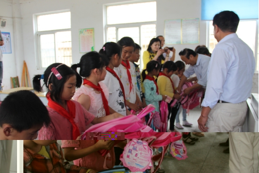 2016年5月31日上午,市关工委副主任,慈善爱心助学协会领导组组长李晓秋,和领导组成员王学山、张春林,协会第一副会长胡新忠,副秘书长黄平一、商平,协会常务理事李虎,理事李娟及金鹏控股集团企业文化总监程国亭一行九人,在南谯区教委助学办陈主任陪同下,在六一国际儿童节到來之际,代表协会会长孙元武,前往乌衣镇汪郢小学,为贫困学生赠送书包,自动铅笔以及助学资金,让孩子们提前度过了一个特殊的,愉快的儿童节。