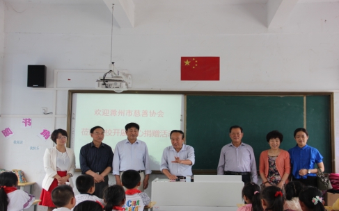2016年5月31日上午,市关工委副主任,慈善爱心助学协会领导组组长李晓秋,和领导组成员王学山、张春林,协会第一副会长胡新忠,副秘书长黄平一、商平,协会常务理事李虎,理事李娟及金鹏控股集团企业文化总监程国亭一行九人,在南谯区教委助学办陈主任陪同下,在六一国际儿童节到來之际,代表协会会长孙元武,前往乌衣镇汪郢小学,为贫困学生赠送书包,自动铅笔以及助学资金,让孩子们提前度过了一个特殊的,愉快的儿童节。