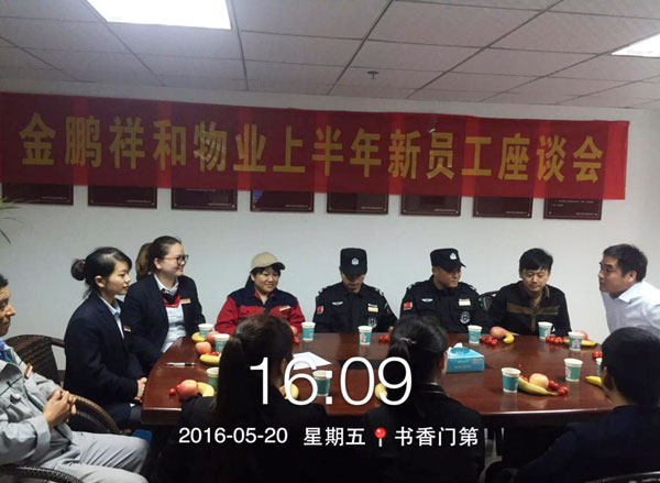 为了了解新员工的想法,提高员工对公司的忠诚度和归属感,减少流失率,并让员工了解公司的发展前景,充分调动新员工的积极性和主动性,物业公司特开展“金鹏祥和物业2016年上半年新员工座谈会”。