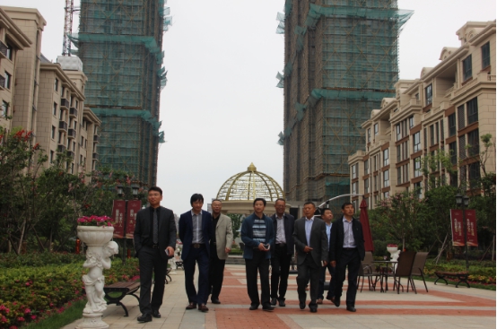 座谈会后,固镇县领导一行在孙元武董事长带领下参观了玫瑰郡实景工法样板间、爱丽舍宫施工现场。在爱丽舍宫施工现场,路书记和陈局长对施工现场质量样板和安全生产防护表示大加赞赏,不禁拿出手机拍照存档,准备让固镇当地的房产开发商企业观摩学习。路书记说,金鹏开发的地产项目,专注于高端改善型项目,独特的建筑风格配上高覆盖率的高端绿化,绿树遮映、葱葱郁郁,仿佛进入一个公园,让人心旷神怡。