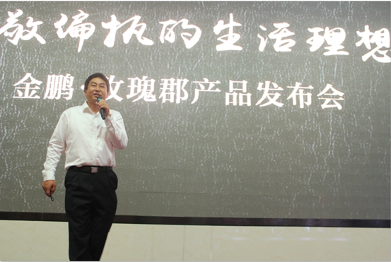 发布会现场,金鹏集团副总经理、金鹏地产总经理王恩陆,金鹏地产副总经理吴雷、金鹏玫瑰郡项目经理尹杰、金鹏玫瑰郡景观设计师汪晨曦分别从不同角度阐述了玫瑰郡特色。