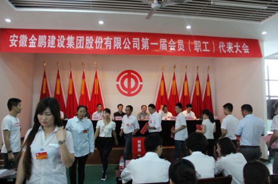 首先由滁州市总工会组织部长王菊宁宣读市总工会《关于同意安徽金鹏建设集团股份有限公司成立工会组织的批复》;集团副总经理、组建工会工作领导小组组长王恩陆在会上作《工会筹备工作报告》;大会以举手表决的方式通过了安徽金鹏建设集团第一届会员(职工)代表大会《选举办法》。